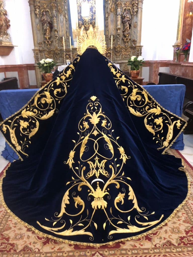 Las cofradías participante de la Magna Mariana que se celebrará en Puente Genil el próximo 22 de octubre, están ultimando los preparativos. Así es el caso, de la cofradía de María Santísima de los Dolores lucirá durante la Magna Mariana un manto de terciopelo azul noche bordado con hilo de oro fino y rematado con un encaje de concha.