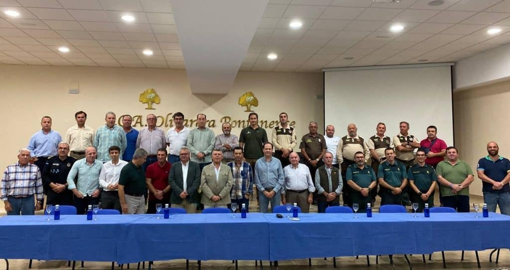 En el encuentro asistieron, junto al alcalde de Puente Genil, Esteban Morales, y al concejal de Seguridad Ciudadana, José Antonio Gómez, el concejal de Agricultura, Francisco Guerrero, los responsables de los cuerpos de la Policía Local y Guardia Civil, así como los presidentes de las tres cooperativas aceituneras locales, agricultores y los representantes de la Federación de Caza y guardas de los cotos.
