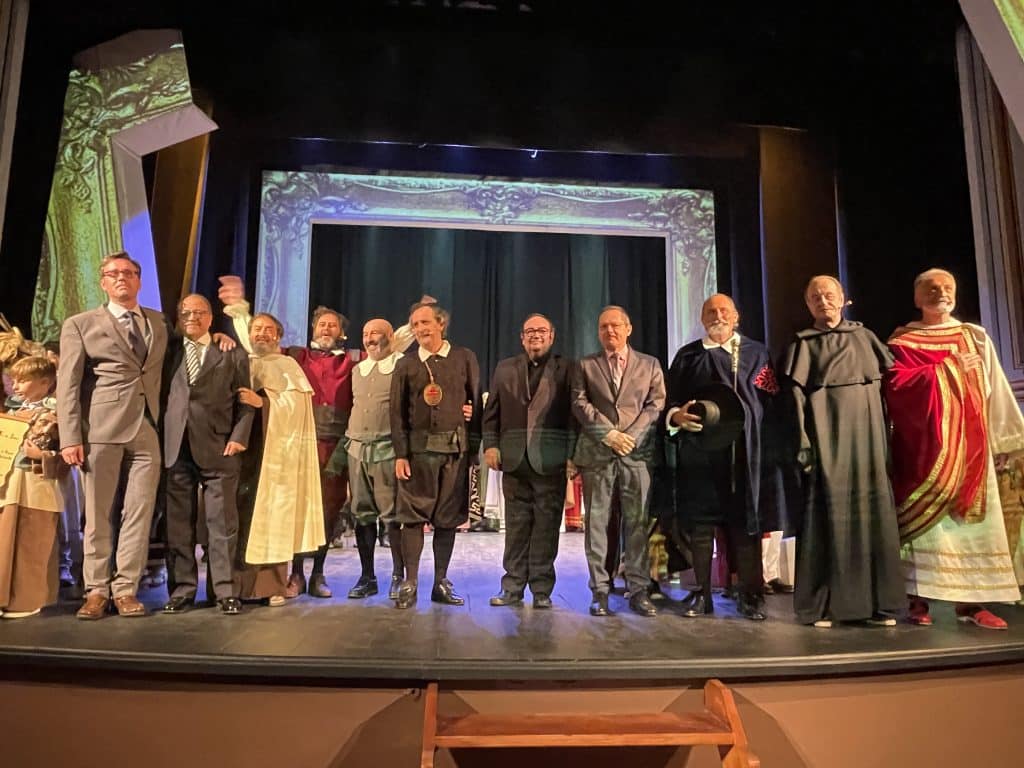 La autoría de Víctor Jiménez bajo la dirección de José Antonio Ortiz, levantó ayer al público en el estreno de la obra de teatro «La Huella de Calderón”. Una representación de altura en toda su dimensión, desde el guión, de una calidad literaria de primer nivel, pasando por la producción en todo su esplendor, la música, los personajes interpretados tanto por artistas profesionales como amateur, difíciles de distinguir.