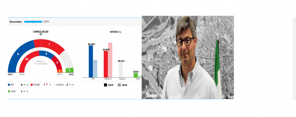 Por primera vez en la historia local, el PP consigue ser la primera fuerza en unos comicios locales con 5.658 votos (en 2019, recogió 3.055), por lo que ha incrementado en 2.603 apoyos.