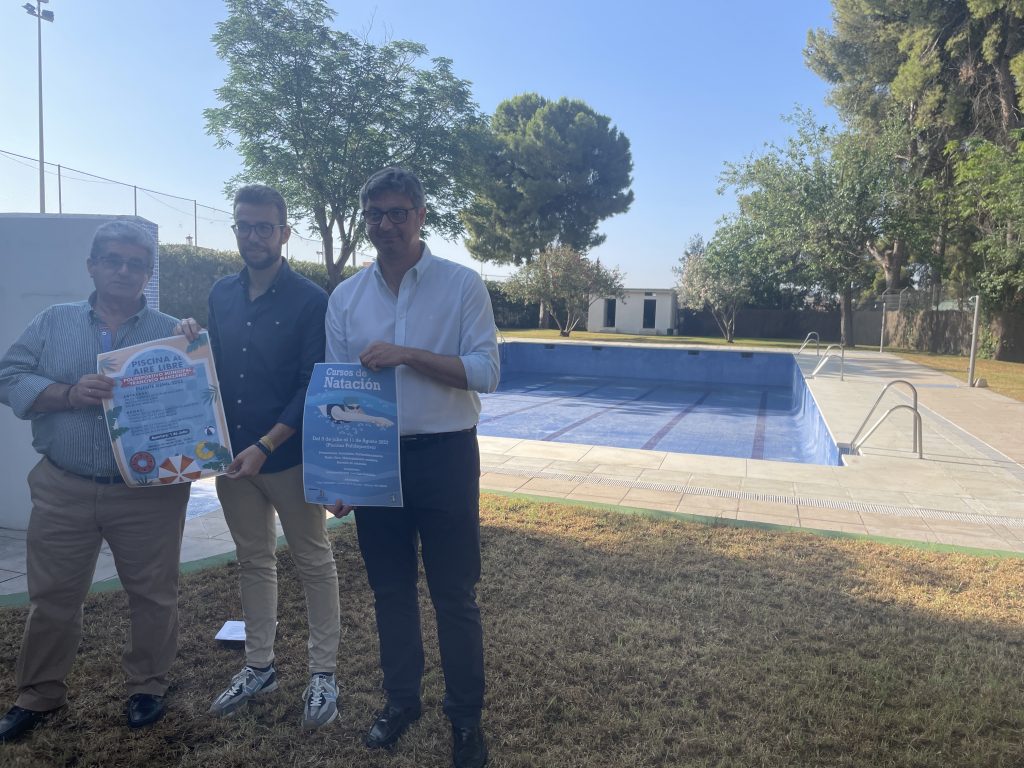 El nuevo concejal, Recursos Humanos, Deportes y Salud, Rafael Ruiz Navas, ha realizado esta mañana su primera convocatoria de prensa en el recinto de la piscina al aire libre para anunciar su reapertura el 1 de Julio y los trabajos previos desarrollados. Ha estado acompañado del alcalde, Sergio Velasco, quien ha puesto en valor la formación y valor del edil para el cargo que representa. También les ha acompañado el concejal de Medio Ambiente, Rafael Morales.