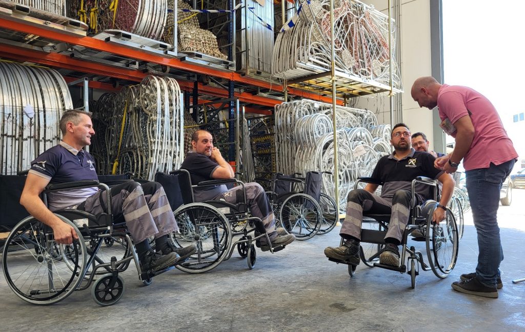 Una actividad muy visual, los empleados voluntarios han participado de un circuito en silla de ruedas para comprobar en primera persona qué siente una persona con movilidad reducida.