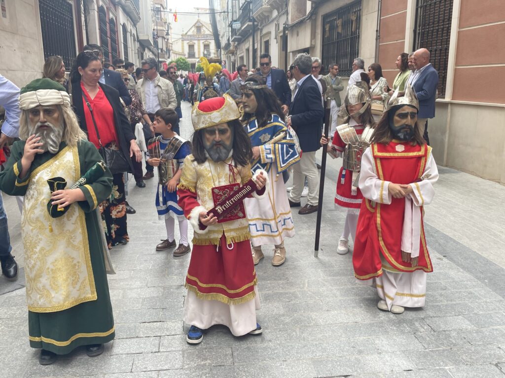 Durante estos días, los niños recrean lo que han visto hacer a sus padres y familiares. Se organizan procesiones en las que desfilan pasos y tronos en miniatura, portados y acompañados indistintamente por niños y niñas. Entre estos pasos destacan los pertenecientes a cofradías que hacen estación de penitencia durante la Semana Santa. Estas son: Cofradía de la Virgen de la Guía, Jesús de las Penas y Virgen de los Ángeles, la Santa Cena y Virgen del Amor, la Santa Cruz y N. P. Jesús de los Afligidos, el Cristo del Calvario y N. Sra. del Consuelo, el Lavatorio, el Señor del Huerto y Virgen de la Victoria, el Señor de la Humildad, la Virgen de la Amargura, la Columna y N. Sra. de la Veracruz, Jesús Preso, N. Sra. de la Esperanza, Jesús Nazareno, el Cristo de la Misericordia y Virgen del Mayor Dolor, así como San Juan Evangelista y Virgen de la Cruz, Virgen de los Dolores, el Cristo de la Buena Muerte, la Hermandad de la Virgen de las Angustias, San Juan, Virgen de la Soledad, el Santo Sepulcro y Jesús Resucitado. A esta lista se suman dos asociaciones infantiles que funcionan de forma similar a las cofradías: la Coronación de Espinas y la Virgen de la Paz.