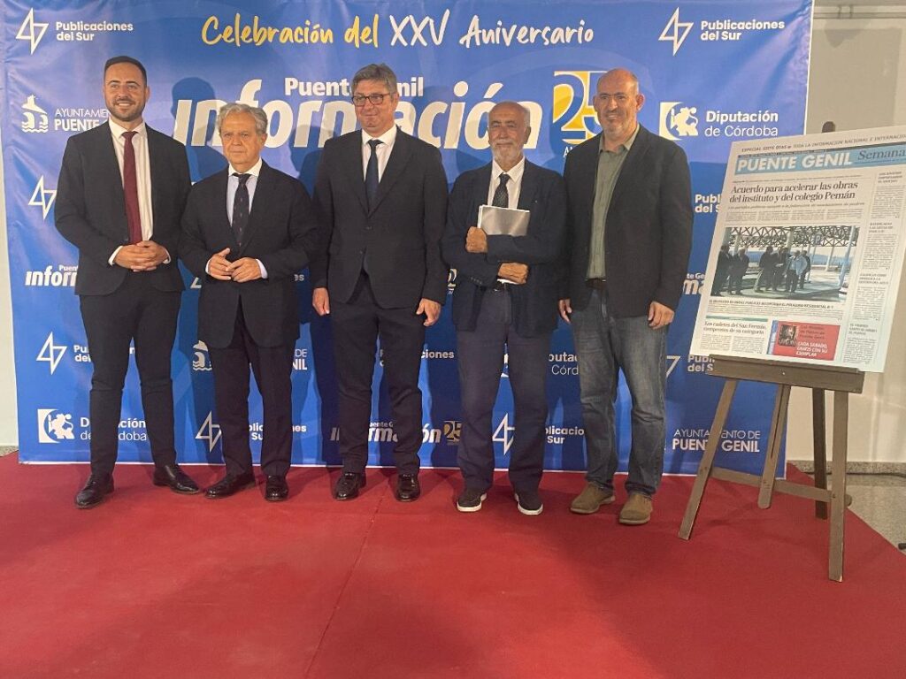 Esta tarde se ha conmemorado el 25º aniversario del periódico local, Puente Genil Información, en un acto celebrado en los bajos de la Biblioteca Ricardo Molina. Han asistido el consejero – delegado de Publicaciones del Sur, José Antonio Mallou, el alcalde, Sergio Velasco y el presidente de la Diputación de Córdoba, Salvador Fuentes, así como portavoces y concejales de los cuatro grupos políticos de la Corporación Municipal, colaboradores y amigos de la cabecera.