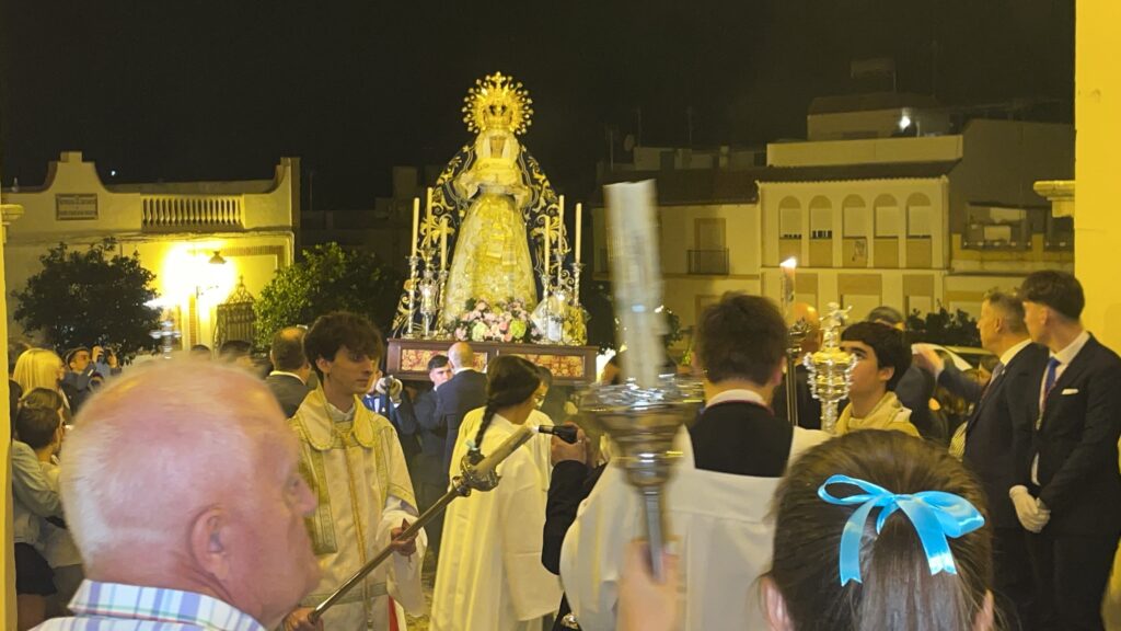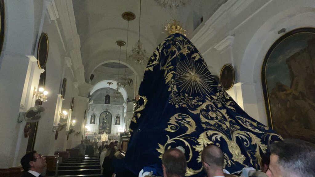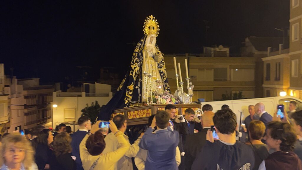 Nuestra Señora de la Estrella, cotitular de la Cofradía de la Borriquita ha salido esta noche en procesión extraordinaria con motivo del 40 aniversario de su primera salida procesional.