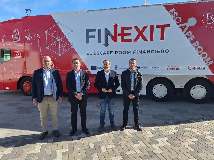 FINEXIT, un innovador autobús itinerante que recorre los centros de Formación Profesional de más de un centenar de ciudades de toda España, se encuentra estos días instalado en la Plaza de San Felipe Neri, junto al IES Ingeniero Juan de la Cierva, con el objetivo de fomentar la formación financiera. Se trata de una iniciativa de la Cámara de Comercio de España y la Fundación MAPFRE, que también cuenta con la cofinanciación de la Unión Europea.