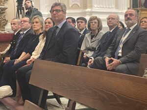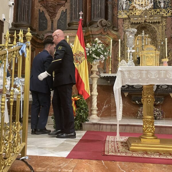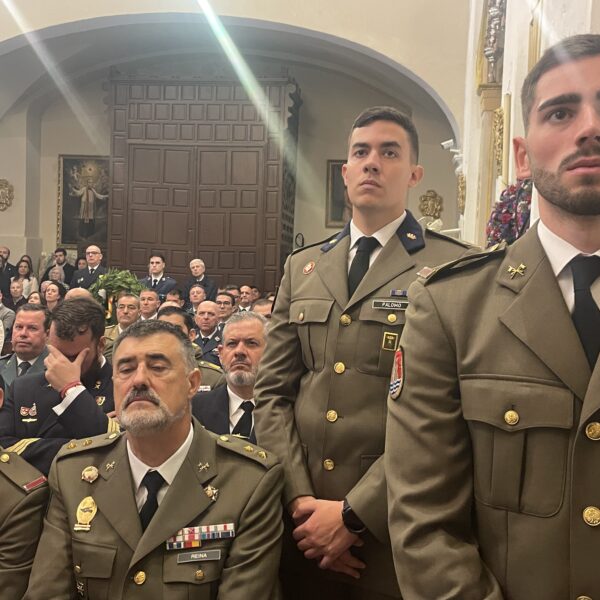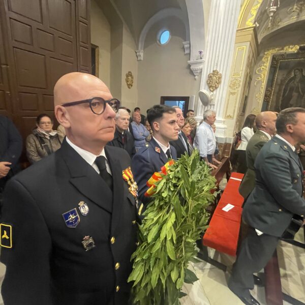 Durante la ceremonia se ha llevado a cabo la ofrenda e imposición de un corbatín conmemorativo al estandarte de la Cofradía. Finalizada la Misa, se ha celebrado un responso, acompañado del toque de oración, y se depositado una corona de laurel en memoria de los caídos.