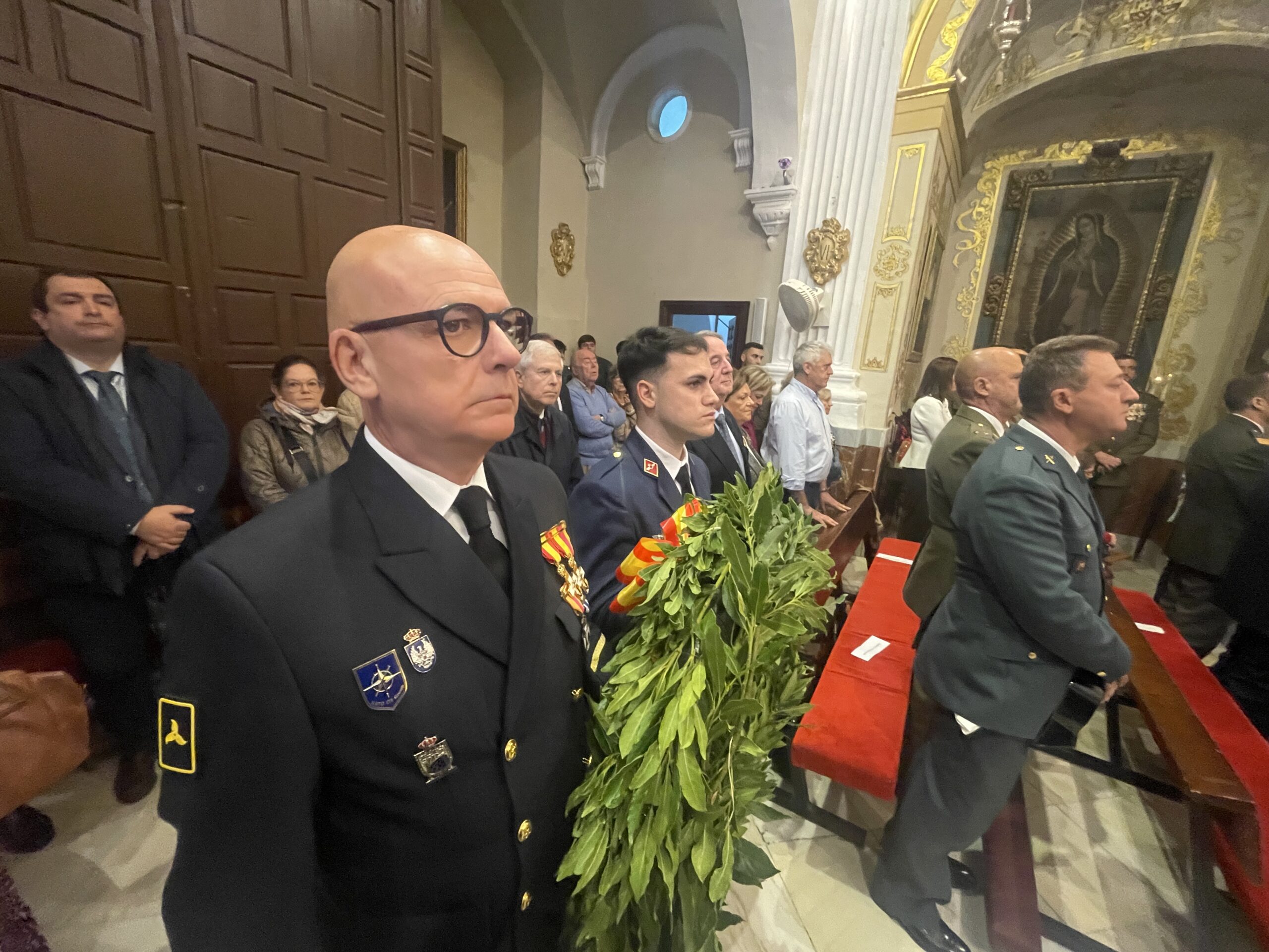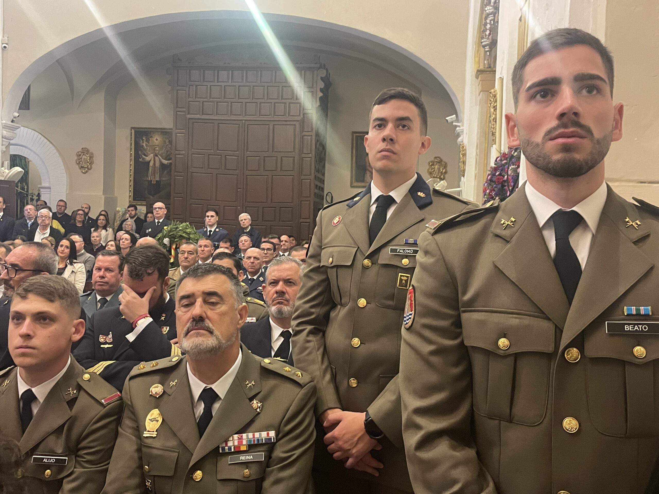 Durante la ceremonia se ha llevado a cabo la ofrenda e imposición de un corbatín conmemorativo al estandarte de la Cofradía. Finalizada la Misa, se ha celebrado un responso, acompañado del toque de oración, y se depositado una corona de laurel en memoria de los caídos.